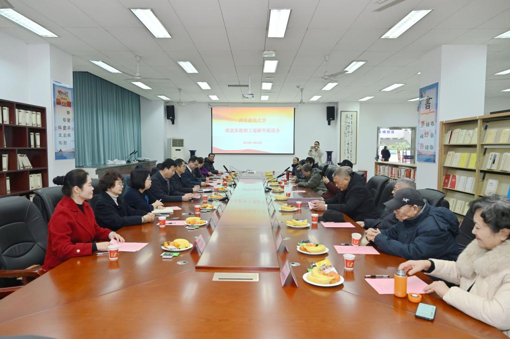 本网讯(通讯员 孙磊)12月25日上午,学校在长安校区图书馆二楼会议室召开离退休教职工迎新年座谈会。校党委书记马宁、校长卢光跃出席座谈会并讲话。离退休教职工代表,人事处、工会、后勤管理处负责人及离退休服务处全体工作人员参加会议。校党委副书记安增旺主持会议。