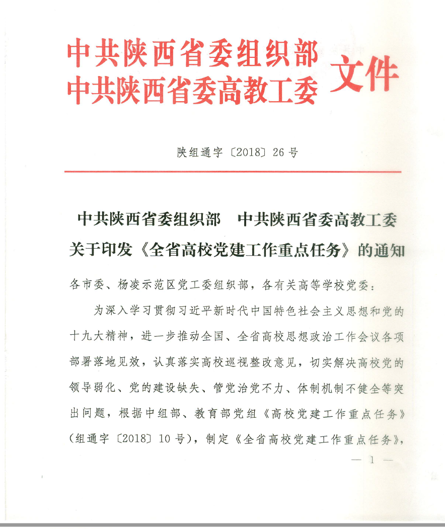 中共陕西省委组织部 中共陕西省委高教工委关于印发《全省高校党建工作重点任务》的通知